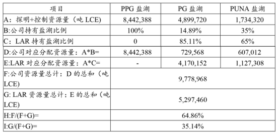 整合完成后,赣锋国际和LAR将分别持有Millennial67%和33%的股权,并按份额共同持有PPGS锂盐湖项目。据各方整合后持有资源量推算,赣锋锂业对应分配资源量总计为9,778,968吨LCE,LAR对应分配资源量总计为5,297,460吨LCE。